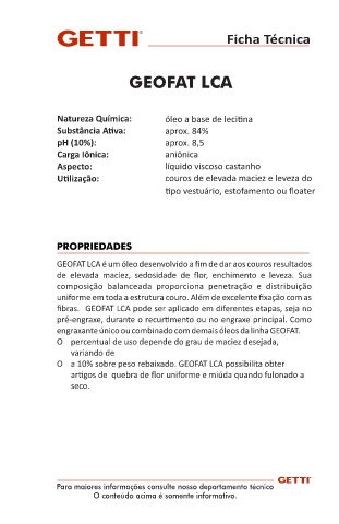 GEOFAT LCA é um óleo desenvolvido a fim de dar aos couros resultados