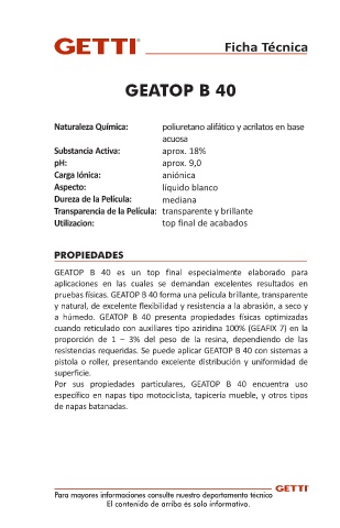pruebas físicas. GEATOP B 40 forma una película brillante, transparente