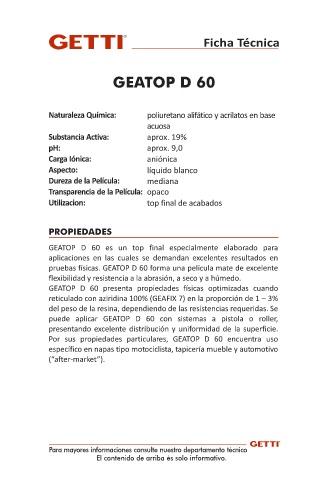 GEATOP D 60 presenta propiedades físicas optimizadas cuando