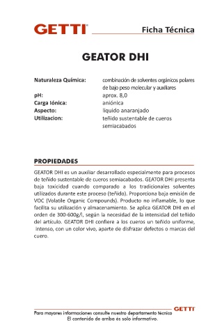 del artículo. GEATOR DHI confiere a los cueros un teñido uniforme,