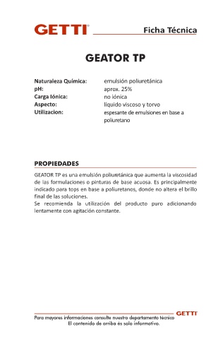 GEATOR TP es una emulsión poliuretánica que aumenta la viscosidad