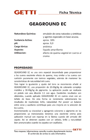 obtenidos, cuando aplicado GEAGROUND EC en cueros crust con un