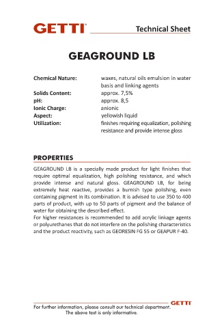 and the product reactivity, such as GEORESIN FG 55 or GEAPUR F-40.