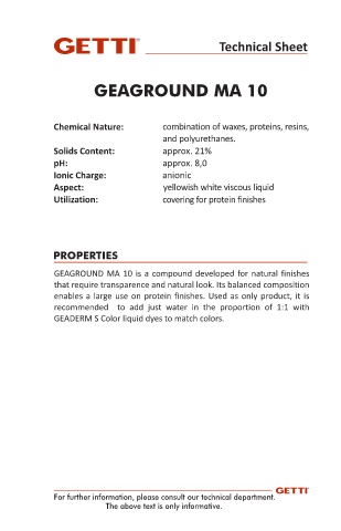GEAGROUND MA 10 is a compound developed for natural finishes