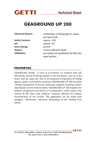 agents, waxes, and auxiliary products, GEAGROUND UP 200 provides