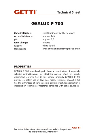 pigmented leathers. Due to this special property, GEALUX P 700