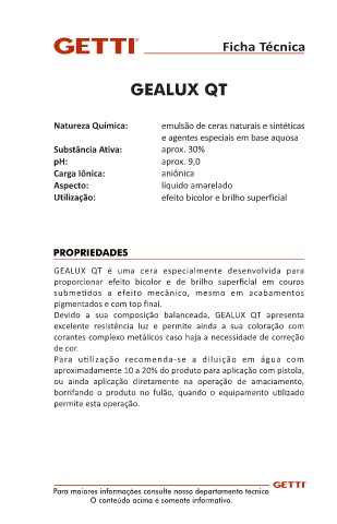 Devido a sua composição balanceada, GEALUX QT apresenta