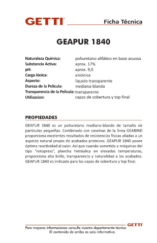 aspecto natural propio de acabados proteicos. GEAPUR 1840 posee