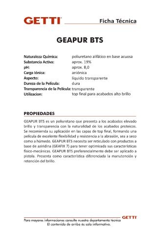 físico-mecánicas. GEAPUR BTS preferencialmente debe ser aplicado a