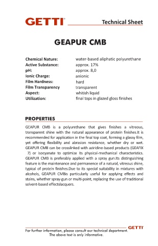 GEAPUR CMB is a polyurethane that gives finishes a vitreous,