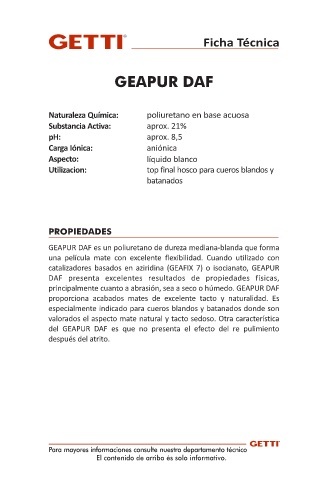 principalmente cuanto a abrasión, sea a seco o húmedo. GEAPUR DAF