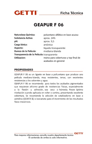 GEAPUR F 06 es un ligante en base a poliuretano que produce una