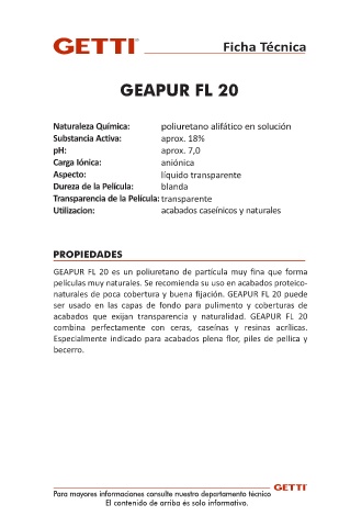 acabados que exijan transparencia y naturalidad. GEAPUR FL 20