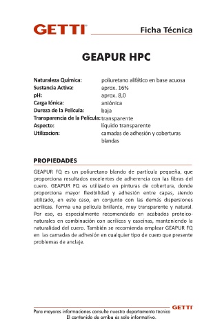 cuero. GEAPUR FQ es utilizado en pinturas de cobertura, donde