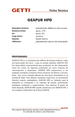 GEAPUR HPD es un policarbonato alifático de dureza mediana, mate,