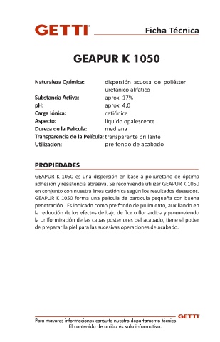 GEAPUR K 1050 es una dispersión en base a poliuretano de óptima