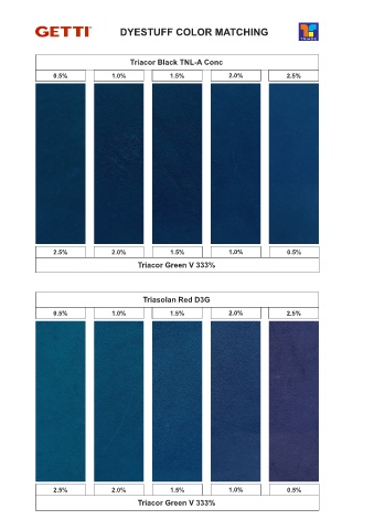 DYESTUFF COLOR MATCHING Triacor Black TNL-A Conc 0.5% 1.0% 1.5% 2.0% 2.5% 2.5% 2.0% 1.5% 1.0% 0.5% Triacor Green V 333% Triasolan Red D3G 0.5% 1.0% 1.5% 2.0% 2.5% 2.5% 2.0% 1.5% 1.0% 0.5% Triacor Green V 333%