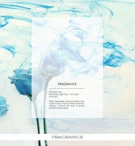 FRAGRANCE Genuine Veg Retanning: Light Veg - 1.4/1.5mm Full Grain Tight vegetable-tanned leather with a soft touch, nished with metal-free anilines, natural oils and a glossy protein binder layer. GRANCE FRAGRANCE FRA GRANCE FRA