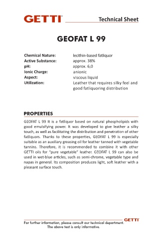 fatliquors. Thanks to these proper es, GEOFAT L 99 is especially