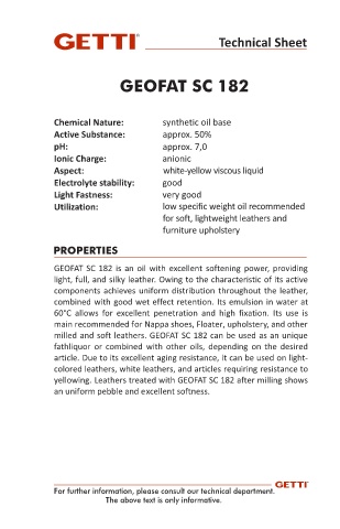 milled and soft leathers. GEOFAT SC 182 can be used as an unique