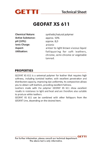 GEOFAT XS 611 is a universal polymer for leather that requires high