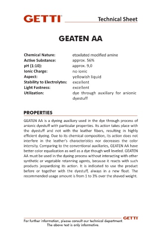 GEATEN AA is a dyeing auxiliary used in the dye through process of