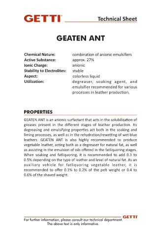 GEATEN ANT is an anionic surfactant that acts in the solubiliza on of