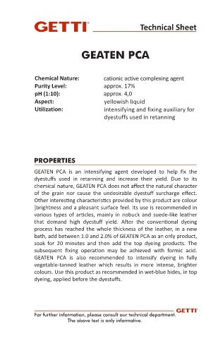 GEATEN PCA is also recommended to intensify dyeing in fully