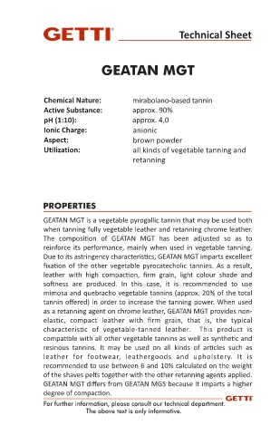 GEATAN MGT is a vegetable pyrogallic tannin that may be used both