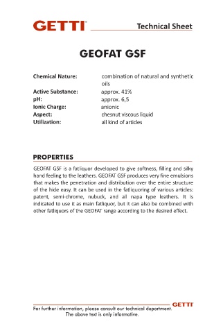 hand feeling to the leathers. GEOFAT GSF produces very fine emulsions