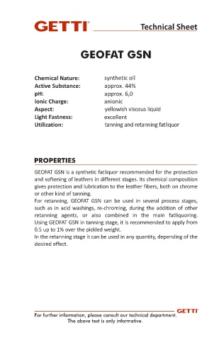GEOFAT GSN is a synthetic fatliquor recommended for the protection
