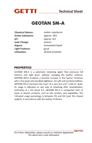 GEOTAN SM-A is a polymeric retanning agent that produces full