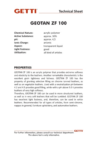 excellent grain tightness and fullness. GEOTAN ZF 100 has the