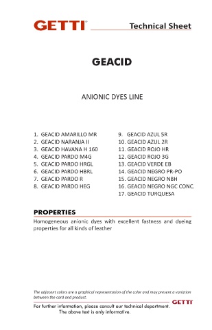 1. GEACID AMARILLO MR 9. GEACID AZUL 5R