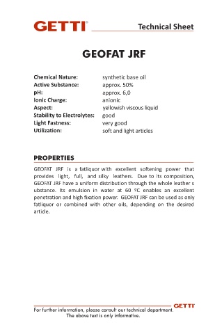 GEOFAT JRF is a fatliquor with excellent softening power that