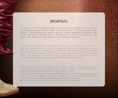 lifestyle. Details define its sporty identity. Matte vegetalized leathers, soft