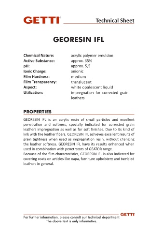 link with the leather fibers, GEORESIN IFL achieves excellent results of