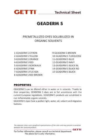 GEADERM S dyes have a perfect light, water, oil, solvent and migration