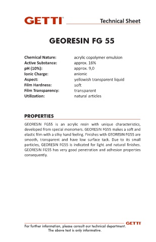 elastic film with a silky hand feeling. Finishes with GEORESIN FG55 are