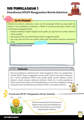 SPLDV yang akan kita bahas. Pada sub pembelajaran 3 ini kita akan mempelajari metode