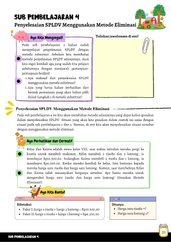 situasi pada sub pembelajaran 2 dan 3. Namun, di sini kita akan menyelesaikan situasi tersebut