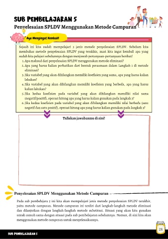 Pada sub pembelajara 5 ini kita akan mempelajari jenis metode penyelesaian SPLDV terakhir,