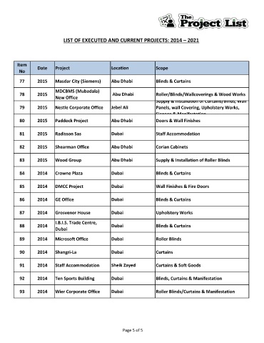 LIST OF EXECUTED AND CURRENT PROJECTS: 2014 – 2021