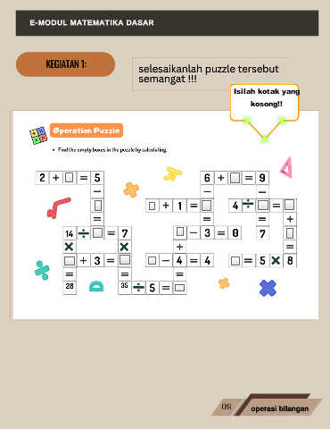 E-MODUL MATEMATIKA DASAR KEGIATAN 1: selesaikanlah puzzle tersebut semangat !!! 04 09 operasi bilangan