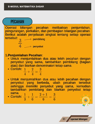 pengurangan, perkalian, dan pembagian bilangan pecahan.