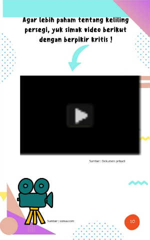 Agar lebih paham tentang keliling persegi, yuk simak video berikut dengan berpikir kritis ! Sumber : Dokumen pribadi 17 10 Sumber : canva.com
