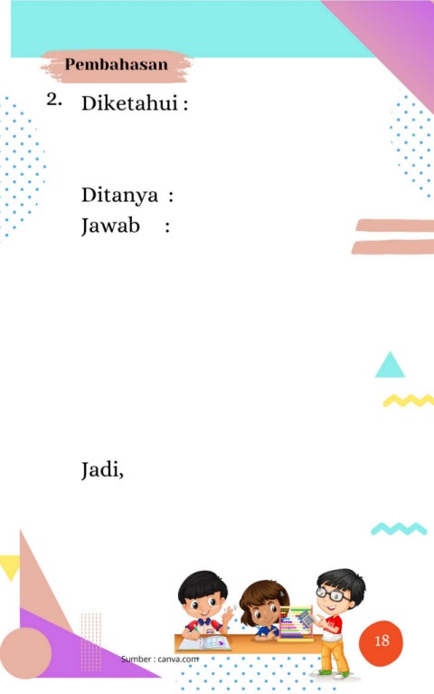 Pembahasan 2. Diketahui : Ditanya : Jawab : Jadi, 17 18 Sumber : canva.com