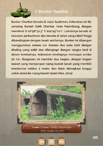 Bunker  Charitas  berada  di  Jalan  Sudirman,  Kelurahan  20  Ilir,