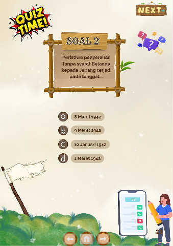 SOAL 2 O 2 L A S Peristiwa penyerahan tanpa syarat Belanda kepada Jepang terjadi pada tanggal.... 8 Maret 1942 9 Maret 1942 10 Januari 1942 1 Maret 1942 25