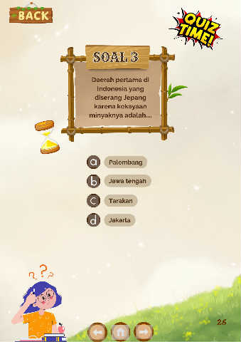 SOAL 3 3 O L A S Daerah pertama di Indonesia yang diserang Jepang karena kekayaan minyaknya adalah.... Palembang Jawa tengah Tarakan Jakarta 26